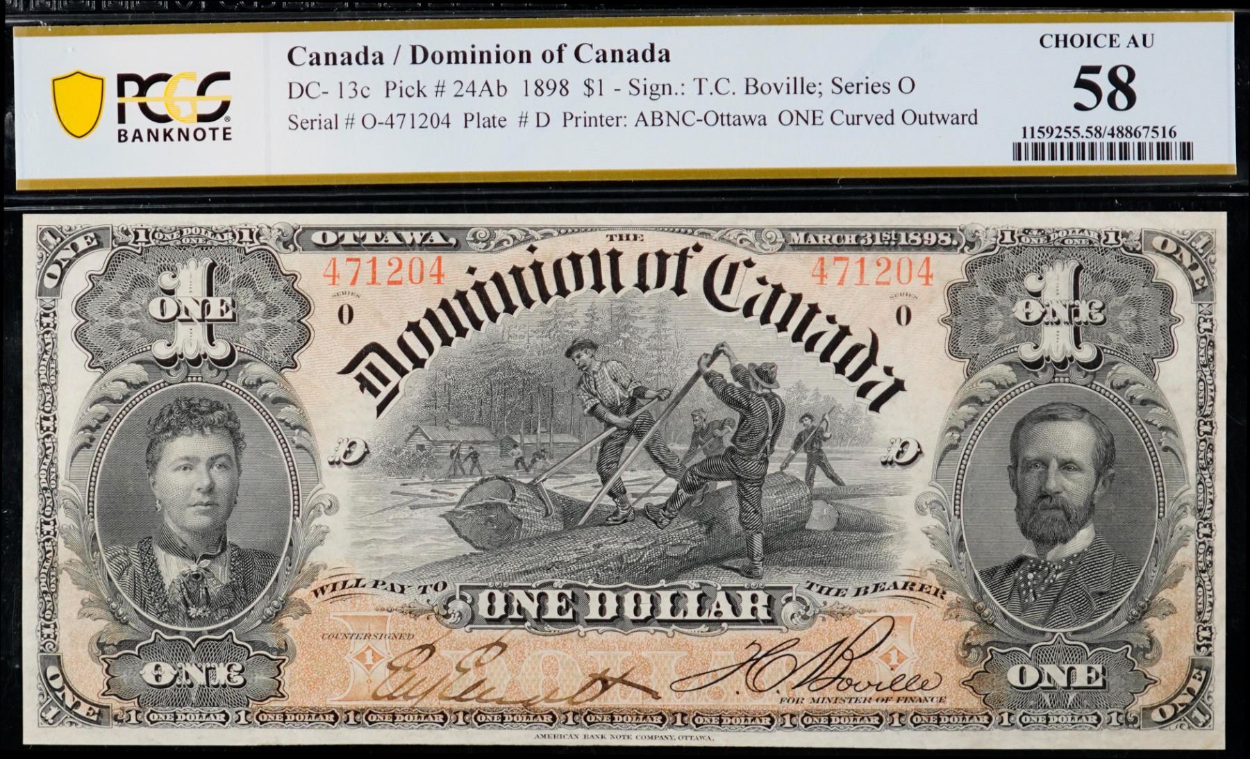 1898 $1 DC-13c #471204 PCGS Choice About Uncirculated-58. A bright example with vibrant colours. A superb and attractive example.