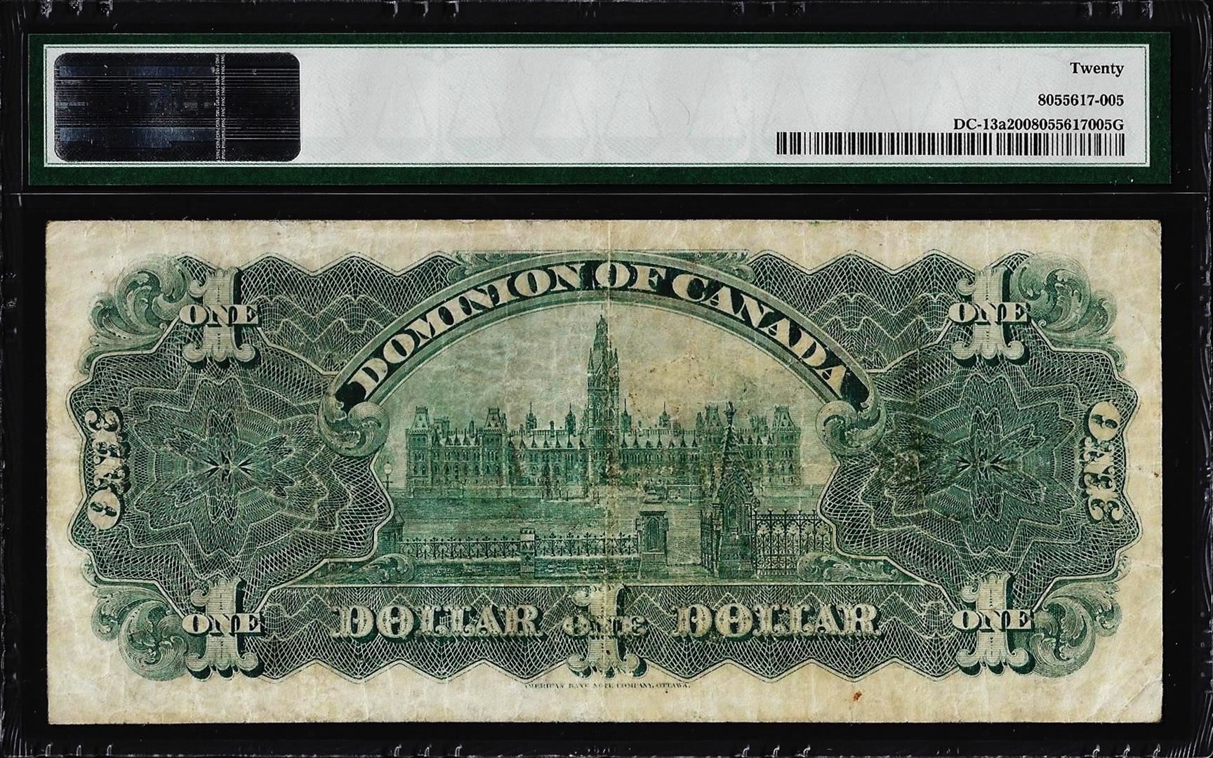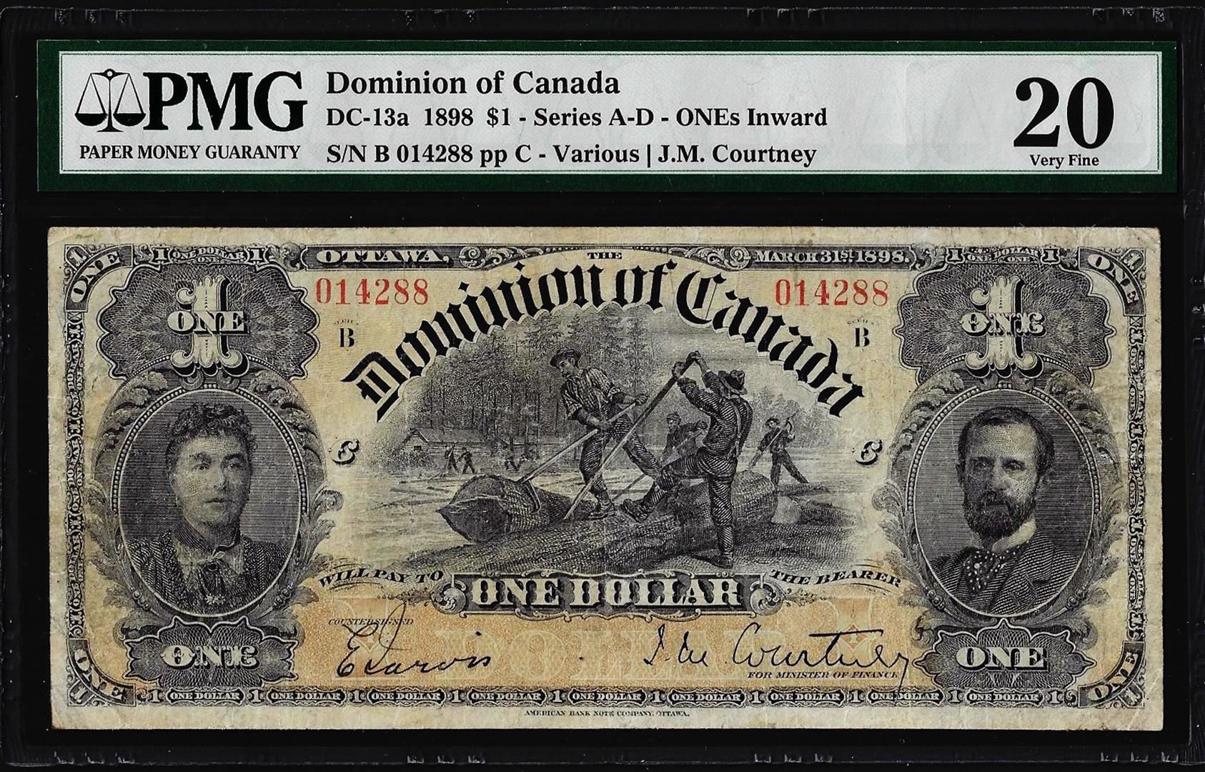 One 1898 $1 Dominion of Canada ONEs Inward Note DC-13a PMG Very Fine 20. PMG Certified.