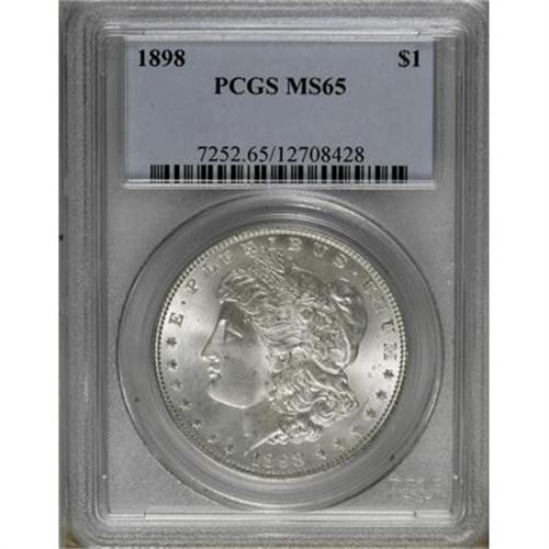<B>1898 $1 MS65 PCGS.</B></I> PCGS Population (1740/549). NGC Census: (2048/372). Mintage: 5,884,735. Numismedia Wsl. Price for NGC/PCGS coin in MS65: $180. (#7252)<BR><BR><B>Coin Engraver:</B> George T. Morgan<BR><BR><b>Shipping:</b> Coins & Currency (<a target="_blank" href="http://www.heritageauctions.com/common/shipping.php">view shipping information</a>)
