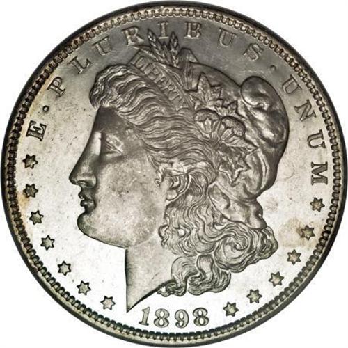 <B>1898 $1 MS66 Deep Mirror Prooflike NGC.</B></I> Deeply mirrored fields yield pronounced contrast with the motifs of this Premium Gem. A well executed strike imparts strong definition on the design features, including the hair over the ear and the eagle's breast feathers. Untoned, save for a couple of light gold-tan splashes on the obverse. Well preserved throughout. Census: 5 in 66 Deep Mirror Prooflike, 0 finer (1/08).<BR><BR><b>Shipping:</b> Coins & Currency (<a target="_blank" href="http://www.heritageauctions.com/common/shipping.php">view shipping information</a>)