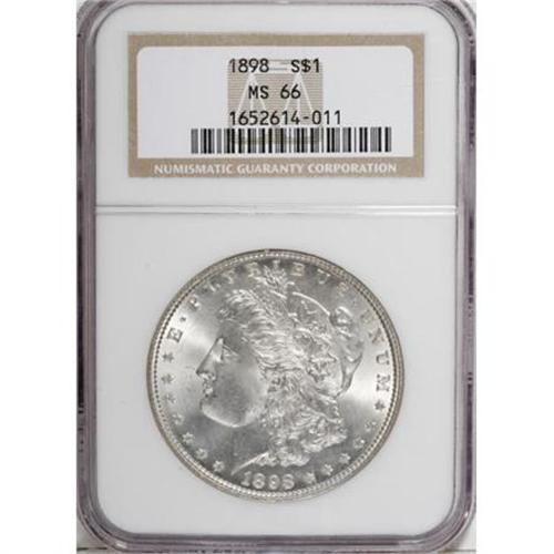 <B>1898 $1 MS66 NGC.</B></I> NGC Census: (333/11). PCGS Population (462/24). Mintage: 5,884,735. Numismedia Wsl. Price for NGC/PCGS coin in MS66: $600. (#7252)<BR><BR><B>Coin Engraver:</B> George T. Morgan<BR><BR><b>Shipping:</b> Coins & Currency (<a target="_blank" href="http://www.heritageauctions.com/common/shipping.php">view shipping information</a>)