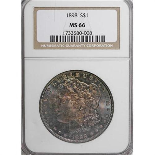 <B>1898 $1 MS66 NGC.</B></I> NGC Census: (359/12). PCGS Population (522/24). Mintage: 5,884,735. Numismedia Wsl. Price for NGC/PCGS coin in MS66: $600. (#7252)<BR><BR><B>Coin Engraver:</B> George T. Morgan<BR><BR><b>Shipping:</b> Coins & Currency (<a target="_blank" href="http://www.heritageauctions.com/common/shipping.php">view shipping information</a>)
