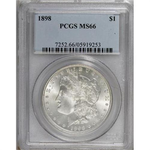 <B>1898 $1 MS66 PCGS.</B></I> PCGS Population (463/24). NGC Census: (334/11). Mintage: 5,884,735. Numismedia Wsl. Price for NGC/PCGS coin in MS66: $600. (#7252)<BR><BR><B>Coin Engraver:</B> George T. Morgan<BR><BR><b>Shipping:</b> Coins & Currency (<a target="_blank" href="http://www.heritageauctions.com/common/shipping.php">view shipping information</a>)