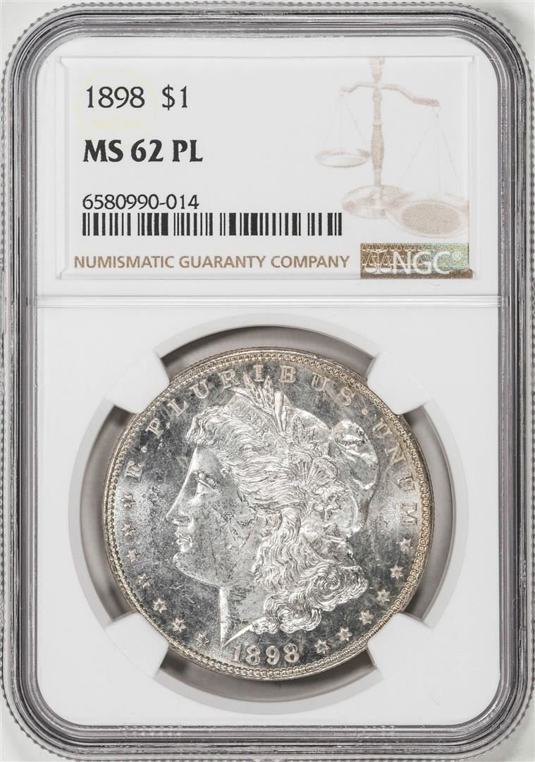 One 1898 $1 Morgan Silver Dollar Coin NGC MS62PL. NGC Certified.