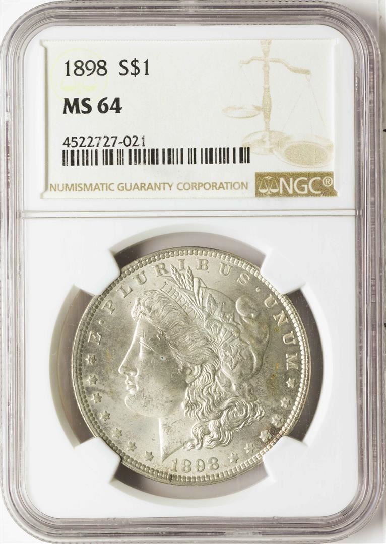 One 1898 $1 Morgan Silver Dollar Coin NGC MS64. NGC Certified.