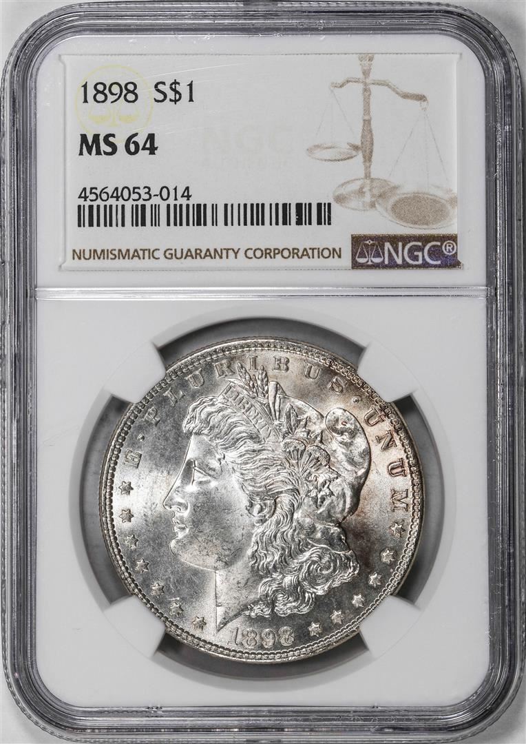 One 1898 $1 Morgan Silver Dollar Coin NGC MS64. NGC Certified.