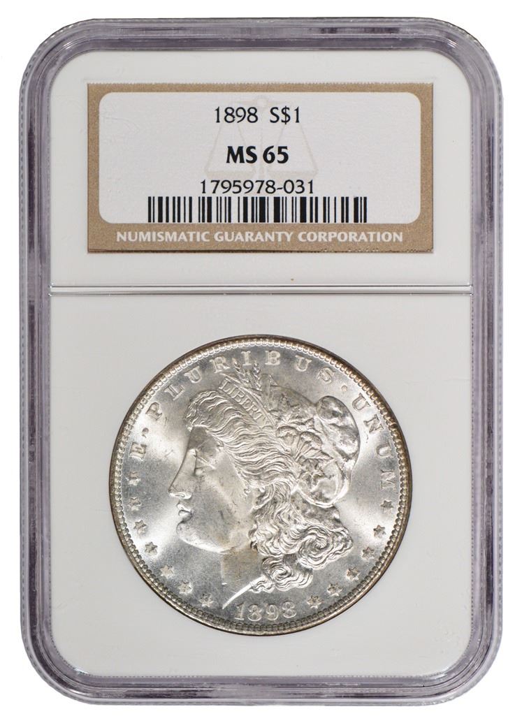 One 1898 $1 Morgan Silver Dollar Coin NGC MS65.