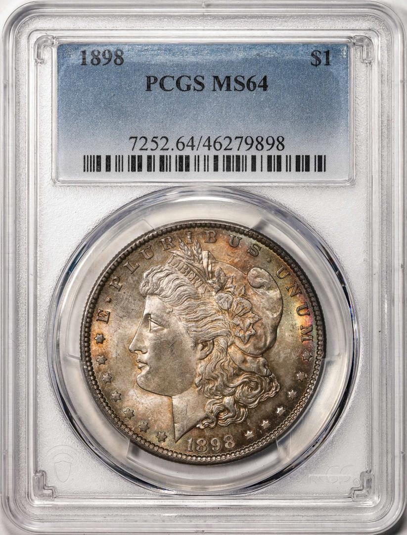 One 1898 $1 Morgan Silver Dollar Coin PCGS MS64 Amazing Toning. PCGS Graded.