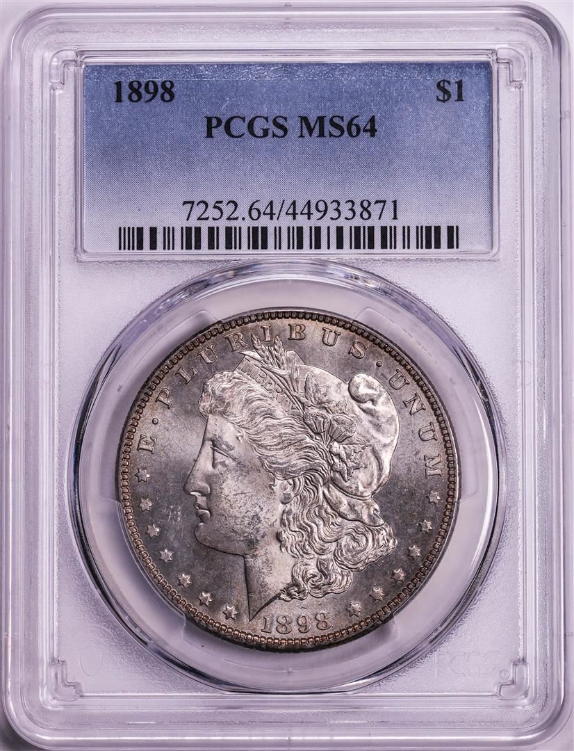 One 1898 $1 Morgan Silver Dollar Coin PCGS MS64. PCGS Graded.