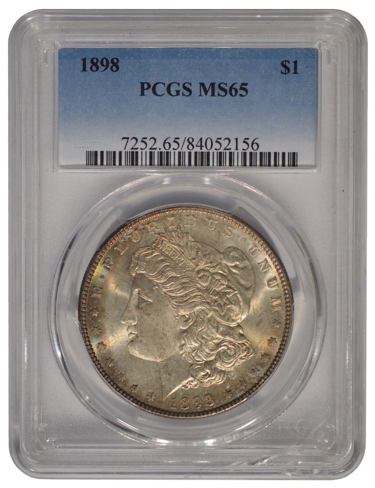 One 1898 $1 Morgan Silver Dollar Coin PCGS MS65.