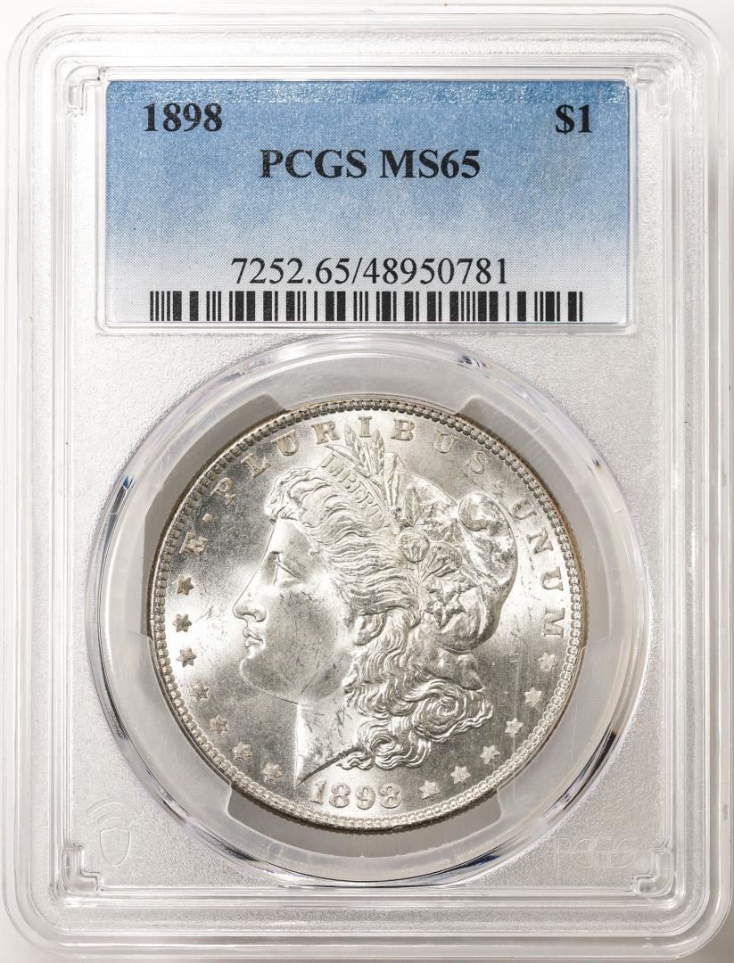 One 1898 $1 Morgan Silver Dollar Coin PCGS MS65. PCGS Graded.