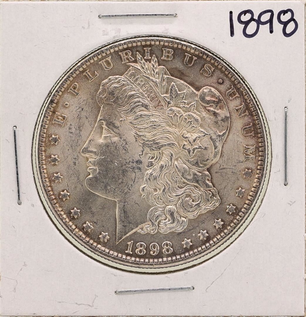 One 1898 $1 Morgan Silver Dollar Coin.