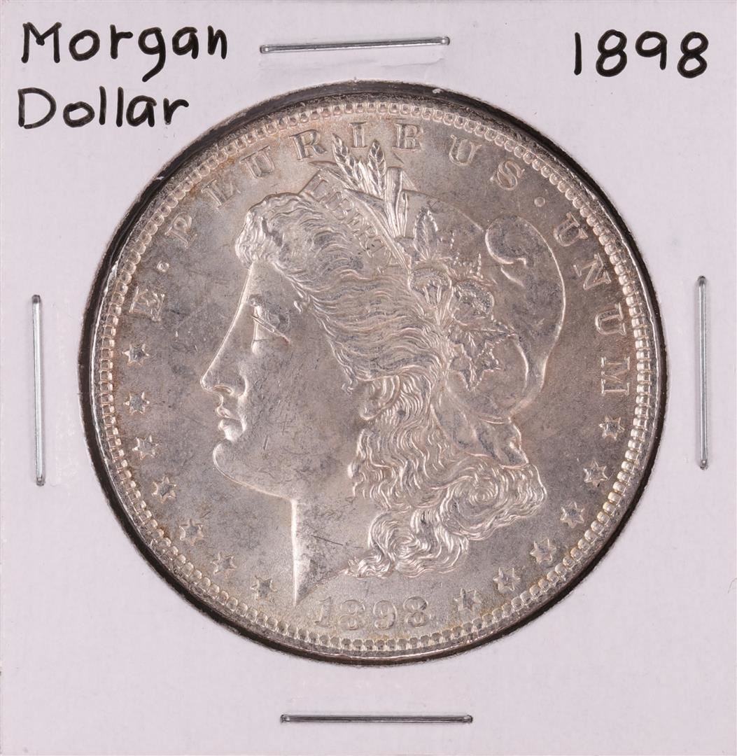 One 1898 $1 Morgan Silver Dollar Coin.