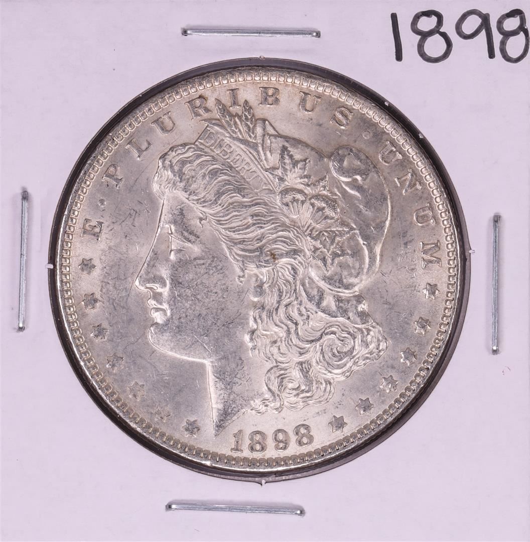 One 1898 $1 Morgan Silver Dollar Coin.