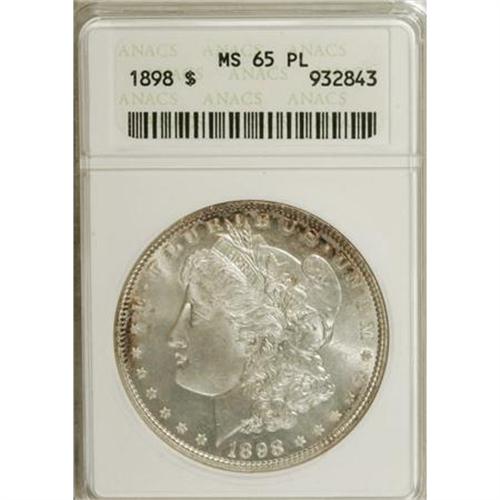 <B>1898 $1 MS65 Prooflike ANACS.</B></I> NGC Census: (69/8). PCGS Population (91/11). Numismedia Wsl. Price for NGC/PCGS coin in MS65: $452. (#7253)<BR><BR><B>Coin Engraver:</B> George T. Morgan<BR><BR><b>Shipping:</b> Coins & Currency (<a target="_blank" href="http://www.heritageauctions.com/common/shipping.php">view shipping information</a>)