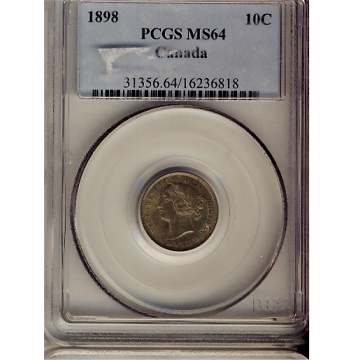 1898 10¢ PCGS MS64. Intense brown to green shades. Near Gem. Flashy.