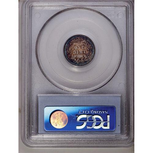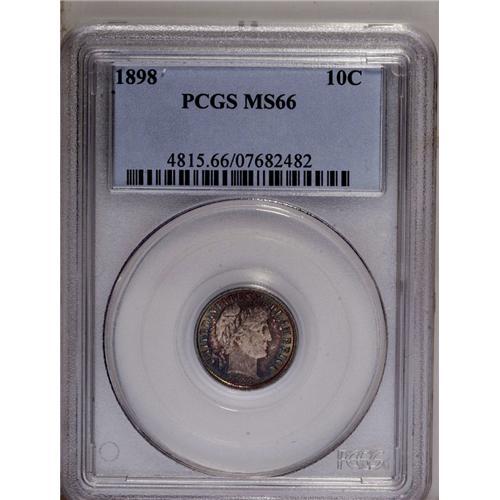 <B>1898<10C> MS66 PCGS.</B></I> The base of the 18 in the date is clearly repunched. This lustrous high grade dime is exquisitely toned in golden-brown, apple-green, and mauve shades. Population: 23 in 66, 4 finer (5/06).