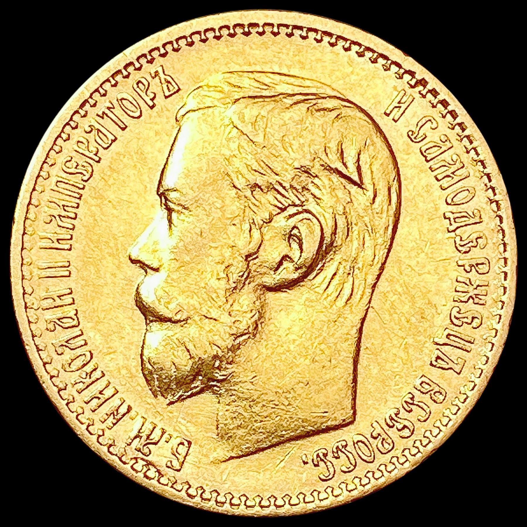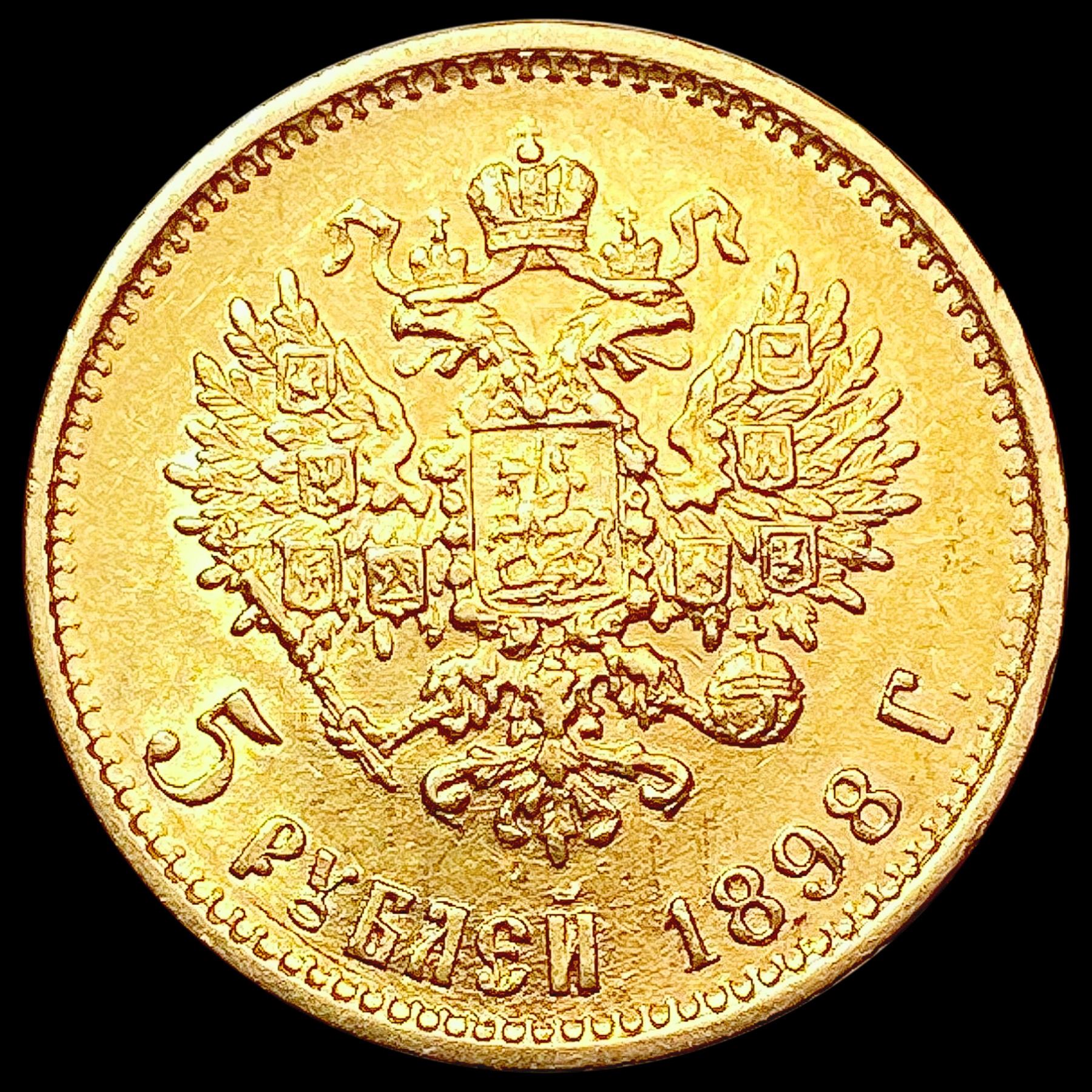 1898 .1245oz Gold Russia 5 Roubles UNCIRCULATED