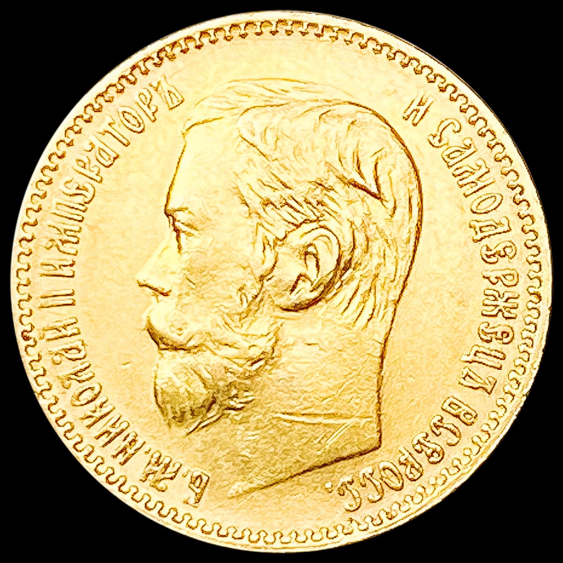 1898 .1245oz Gold Russia 5 Roubles UNCIRCULATED