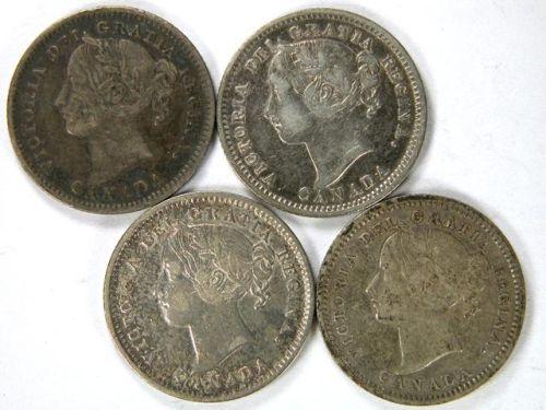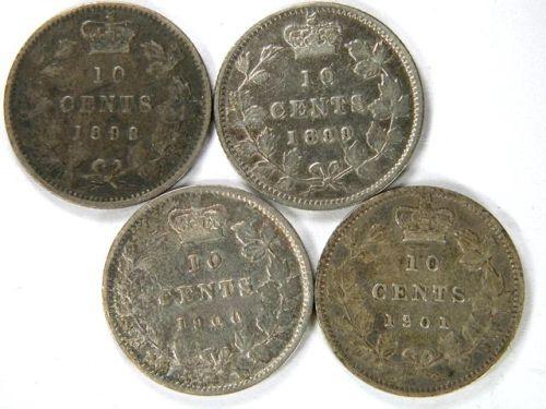 Canada Ten Cents 1898 Obverse 6, 1899 Small 99, 1900 and 1901, all VF, the 1898 medium toned, the rest lightly toned