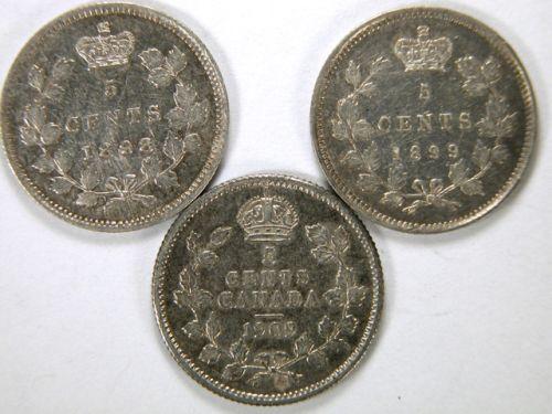 1898, 1899 and 1909 Round Leaves, Three pale toned pieces, all EF, the 1898 lightly cleaned