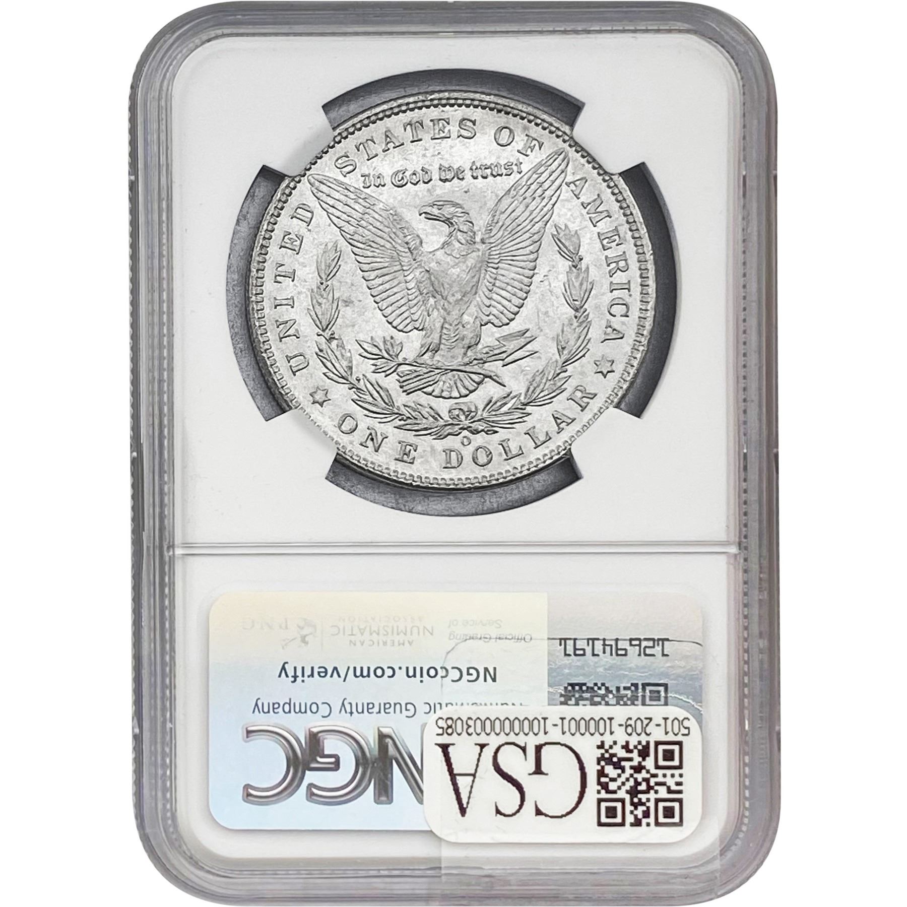 e. Coins sold referencing a third-party grading service are sold “AS IS” without any express or implied warranty, except for a guarantee by GSA that they are genuine. Removal or alteration of the holder, voids all of Bidder’s claims concerning that Product. Certain warranties may be available from the grading services and Bidders are referred to them for further details: Numismatic Guaranty Corporation (NGC), PO Box 4776, Sarasota, FL 34230, www.ngccoin.com/services/writtenguarantee.asp; Professional Coin Grading Services (PCGS), PO Box 9458, Newport Beach, CA 92658, www.pcgs.com/guarantee.html; ANACS, 6555 S. Kenton St., Ste. 303, Englewood, CO 80111; and Independent Coin Grading Co. (ICG), 7901 East Bellview, Ave., Suite 50, Englewood, CO 80111.