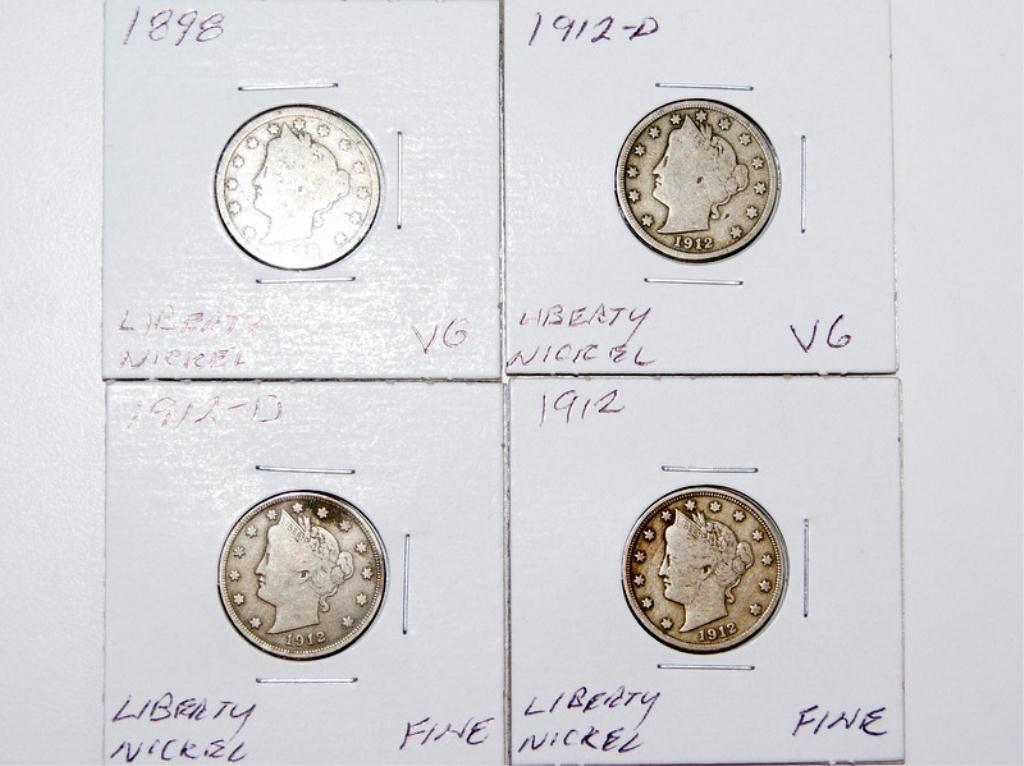 (4) Liberty Nickels - 1898, 1912, 1912 O and 1912D - Graded Fine - Sold Times the Money 1898 - 1912 Fine Liberty Nickels