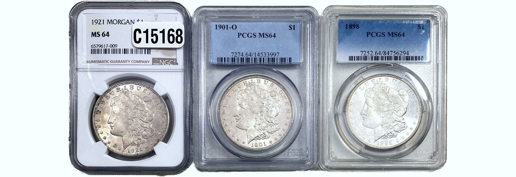 1898-1921 GEM BU Morgan Silver Dollar[3 Coins] PCGS/NGC MS64