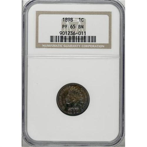 <B>1898 1C PR65 Brown NGC.</B></I> NGC Census: (14/5). PCGS Population (9/2). Mintage: 1,795. Numismedia Wsl. Price for NGC/PCGS coin in PR65: $240. (#2381)<BR><BR><B>Coin Engraver:</B> James B. Longacre<BR><BR><b>Shipping:</b> Coins & Currency (<a target="_blank" href="http://www.heritageauctions.com/common/shipping.php">view shipping information</a>)