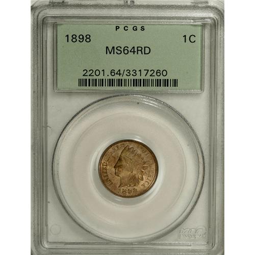 <B>1898 1C MS64 Red PCGS.</B></I> PCGS Population (108/152). NGC Census: (56/93). Mintage: 49,823,080. Numismedia Wsl. Price for NGC/PCGS coin in MS64: $180. (#2201)<BR><BR><b>Shipping:</b> Coins & Currency (<a target="_blank" href="http://www.heritageauctions.com/common/shipping.php">view shipping information</a>)