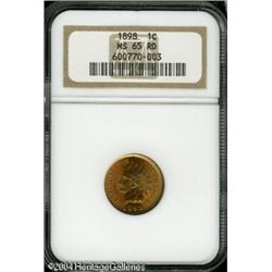 1898 1C MS65 Red NGC. Well struck with splendid fr <B>1898 1C MS65 Red NGC.</B></I> Well struck with splendid frosty luster on both sides, along with beautiful mint-green and red-orange coloration. The matte-like surfaces seem pristine. <BR><BR><B>Important notice:</B> Heritage usually auctions material at the rate of 200-250 lots per hour. On some occasions eBay Live bid software or the Internet may not be able to keep up with the pace of the auction. We recommend placing a realistic absentee bid now as insurance to avoid disappointment. Occasionally the auctioneer may eliminate or reject an eBay Live bid, and the auctioneer may also reopen a lot after the close of the eBay live bidding (usually because we missed an audience bid), and may reject your bid even if it shows you as the winning bidder. By bidding via eBay Live, you agree that Heritage may award the lot to another bidder at its sole discretion under the circumstances described above or any other reasonable circumstances. Since eBay bids are not shown to us until we open the lot on the floor, we treat those bids just like floor bids. In most cases the floor responds before the eBay bid is presented to us, due to Internet lag time, so for consistency we have made it a policy that floor bids are always considered first over tie eBay live bids. Also please note that all Heritage lots purchased through eBay Live carry a 20% Buyer's Premium. Please make sure you read the Terms and Conditions before you bid. This lot is being auctioned in conjunction with a live floor auction by Heritage Galleries & Auctioneers. All final auction and invoice information will be supplied by Heritage Galleries & Auctioneers, and all other information should be considered preliminary. Lot:5103