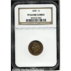 <B>1898<1C> PR64 Cameo NGC.</B></I> Extremely reflective surfaces, accented by frosted devices and deep cherry-red color add to the appeal of this desirable issue.<BR><I>From The Barry Donnell Collection, Part Two.</B></I> <BR><BR><B>Important notice:</B> Heritage usually auctions material at the rate of 200-250 lots per hour. On some occasions eBay Live bid software or the Internet may not be able to keep up with the pace of the auction. We recommend placing a realistic absentee bid now as insurance to avoid disappointment. Occasionally the auctioneer may eliminate or reject an eBay Live bid, and the auctioneer may also reopen a lot after the close of the eBay live bidding (usually because we missed an audience bid), and may reject your bid even if it shows you as the winning bidder. By bidding via eBay Live, you agree that Heritage may award the lot to another bidder at its sole discretion under the circumstances described above or any other reasonable circumstances. Since eBay bids are not shown to us until we open the lot on the floor, we treat those bids just like floor bids. In most cases the floor responds before the eBay bid is presented to us, due to Internet lag time, so for consistency we have made it a policy that floor bids are always considered first over tie eBay live bids. Also please note that all Heritage lots purchased through eBay Live carry a 20% Buyer's Premium. Please make sure you read the Terms and Conditions before you bid. </span></font></tr></table></td></tr></table>