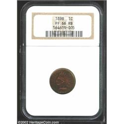 1898 1C PR66 Red and Brown NGC. A peripheral band of sea-green patina frames the radiant orange-red centers. A sharply struck and magnificently preserved Gem that has abundant eye appeal. This sale provides many outstanding opportunities for the proof Indian Cent specialist. Population: 18 in 66 as Red and Brown, with 2 finer (11/02).From the "Newmismatist" Collection. Important notice: We expect to be auctioning lots at the rate of 200-250 per hour. Sometimes eBay Premier live bid software cannot keep up with that pace, so we strongly recommend that you place a realistic proxy bid now as insurance to avoid disappointment. Also please note that all Heritage/CAA lots purchased through eBay Premier carry a 20% Buyer's Premium. Please make sure you read the Terms and Conditions.