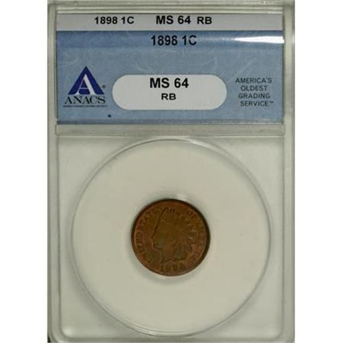 <B>1898 1C MS64 Red and Brown ANACS.</B></I> . NGC Census: (157/116). PCGS Population (198/44). Mintage: 49,823,080. Numismedia Wsl. Price for NGC/PCGS coin in MS64: $93. (#2200)<BR><BR><B>Coin Engraver:</B> James B. Longacre<BR><BR><b>Shipping:</b> Coins & Currency (<a target="_blank" href="http://www.heritageauctions.com/common/shipping.php">view shipping information</a>)