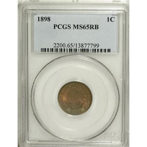 <B>1898 1C MS65 Red and Brown PCGS.</B></I> PCGS Population (40/3). NGC Census: (100/16). Mintage: 49,823,080. Numismedia Wsl. Price for NGC/PCGS coin in MS65: $124. (#2200)<BR><BR><B>Coin Engraver:</B> James B. Longacre<BR><BR><b>Shipping:</b> Coins & Currency (<a target="_blank" href="http://www.heritageauctions.com/common/shipping.php">view shipping information</a>)