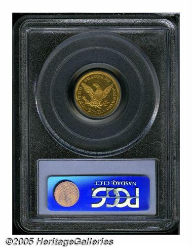 <B>1898<$2 1/2> MS64 PCGS.</B></I> At first glance, this Choice Mint State example appears to be a Proof, with its deeply mirrored fields, lustrous devices, and excellent cameo contrast. It is also quite sharply struck and has excellent light yellow color with green tendencies. Certain aspects show that this is not a Proof strike, however. The depth of the mirrored fields is not quite as deep as on Proof examples, and there is unfinished die work around certain of the reverse letters. There are also lathe marks visible within the vertical shield stripes on the reverse. A die intended for Proof production would almost certainly have been more careful made and finished. Even as a business strike, this is an extremely attractive example.