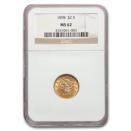 One piece 1898 $2.50 Liberty Gold Quarter Eagle MS-62 NGC