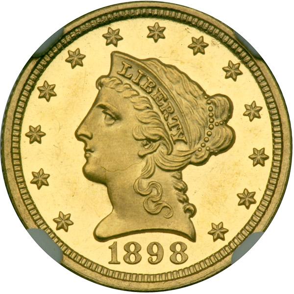 1898. NGC graded Proof 64 Ultra Cameo CAC Approved. Well struck an untoned. Only 165 struck. A visually pleasing cameo Proof of the date, here with frosted motifs and deeply mirrored fields that display much mint brilliance. An attractive Liberty Proof from a small mintage, all delivered from the Medal Department at the Mint throughout the year, and as called for by public demand. Fewer than half of the original number are still extant, which makes for a certain amount of difficulty when today's collectors desire a delightful Choice Proof of the date like this Proof 64 Ultra Cameo. The low census certainly speaks volumes about the inherent quality of this beautiful coin: Pop 7; 31 finer.
