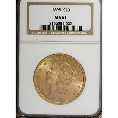 1898 $20 MS61 NGC. NGC Census: (381/670). PCGS Pop