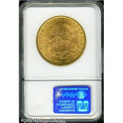 <B>1898 $20 MS62 NGC.</B></I> Well struck and pleasing colored with numerous marks on Liberty's portrait that keep the piece from the MS63 level. A difficult issue at finer levels.<BR><I>From The Richard J. Chouinard Collection of United States Coins, Part Two.</B></I> Lot:9268