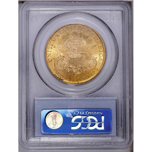 <B>1898<$20> MS62 PCGS.</B></I> Beautifully deep red-gold and green toning illuminates the bright, matte-like surfaces. Sharply struck design features and a few mild abrasions are noted on each of the two sides. <BR><BR><B>Important notice:</B> Heritage usually auctions material at the rate of 200-250 lots per hour. On some occasions eBay Live bid software or the Internet may not be able to keep up with the pace of the auction. We recommend placing a realistic absentee bid now as insurance to avoid disappointment. Occasionally the auctioneer may eliminate or reject an eBay Live bid, and the auctioneer may also reopen a lot after the close of the eBay live bidding (usually because we missed an audience bid), and may reject your bid even if it shows you as the winning bidder. By bidding via eBay Live, you agree that Heritage may award the lot to another bidder at its sole discretion under the circumstances described above or any other reasonable circumstances. Since eBay bids are not shown to us until we open the lot on the floor, we treat those bids just like floor bids. In most cases the floor responds before the eBay bid is presented to us, due to Internet lag time, so for consistency we have made it a policy that floor bids are always considered first over tie eBay live bids. Also please note that all Heritage lots purchased through eBay Live carry a 20% Buyer's Premium. Please make sure you read the Terms and Conditions before you bid. This lot is being auctioned in conjunction with a live floor auction by Heritage Galleries & Auctioneers. All final auction and invoice information will be supplied by Heritage Galleries & Auctioneers, and all other information should be considered preliminary. Lot:4381 <BR><BR><B>Winning Notification and Billing:</B> After the FINAL session in this auction is complete, Heritage will send e-mail and snail mail invoices. This process normally takes several days. All final auction and invoice information will be supplied by Heritage Galleries & Auctioneers, and all other information should be considered preliminary. <BR><BR>This auction will be conducted on a live auction floor and over the Internet through eBay Live. If you choose to place an absentee bid, please take a moment to <font color='#0000ff'><u><a href='http://pages.ebay.com/liveauctions/help/before/laabsentee.html'>learn how eBay Live absentee bidding works</a></u></font><font color='#000000'>