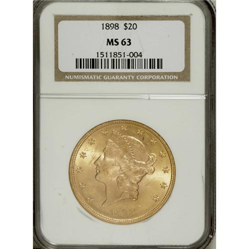 1898 $20 MS63 NGC. The mintage of 170,300 pieces is fa