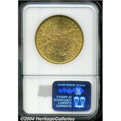 <B>1898<$20> MS63 NGC.</B></I> A satiny, Select quality example that is sharply struck throughout with warmly colored, orange-gold features. Modest abrasions are primarily found on the facial area and in the field to the left. <BR><BR><B>Important notice:</B> Heritage usually auctions material at the rate of 200-250 lots per hour. On some occasions eBay Live bid software or the Internet may not be able to keep up with the pace of the auction. We recommend placing a realistic absentee bid now as insurance to avoid disappointment. Occasionally the auctioneer may eliminate or reject an eBay Live bid, and the auctioneer may also reopen a lot after the close of the eBay live bidding (usually because we missed an audience bid), and may reject your bid even if it shows you as the winning bidder. By bidding via eBay Live, you agree that Heritage may award the lot to another bidder at its sole discretion under the circumstances described above or any other reasonable circumstances. Since eBay bids are not shown to us until we open the lot on the floor, we treat those bids just like floor bids. In most cases the floor responds before the eBay bid is presented to us, due to Internet lag time, so for consistency we have made it a policy that floor bids are always considered first over tie eBay live bids. Also please note that all Heritage lots purchased through eBay Live carry a 20% Buyer's Premium. Please make sure you read the Terms and Conditions before you bid.