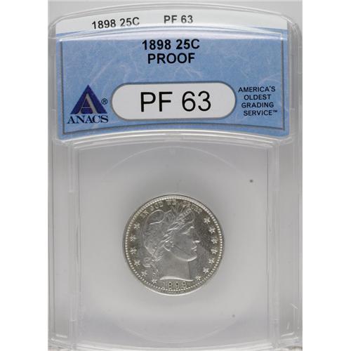 1898 25C PR63 ANACS. NGC Census: (38/292). PCGS Po