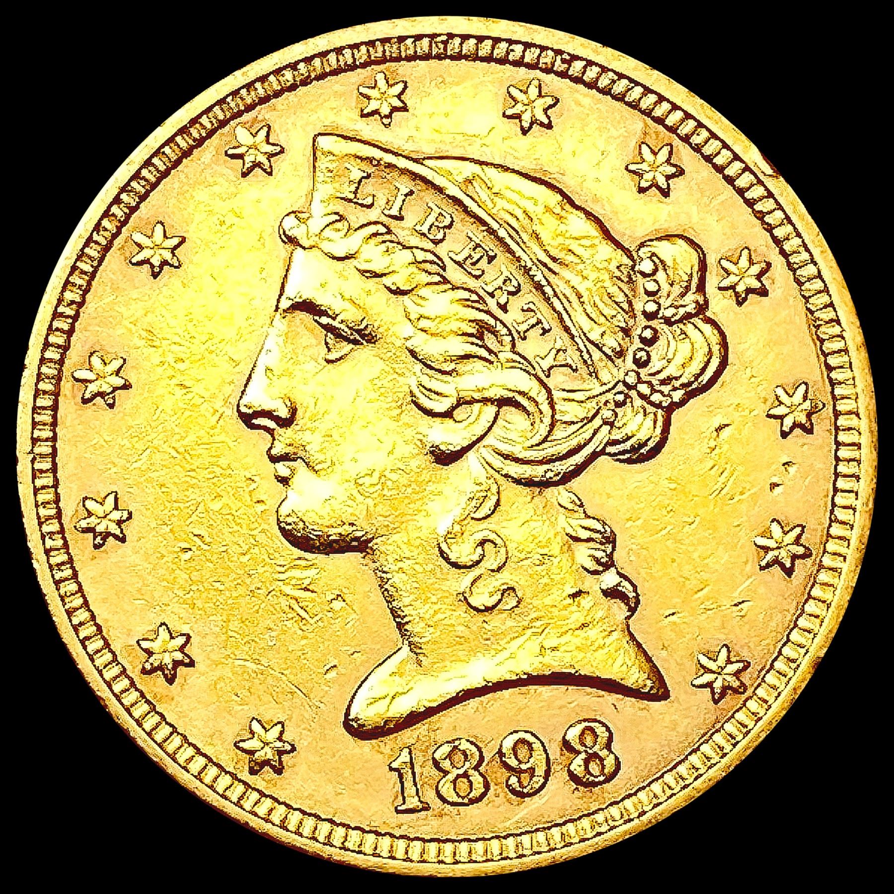 1898 $5 Gold Half Eagle CLOSELY UNCIRCULATED