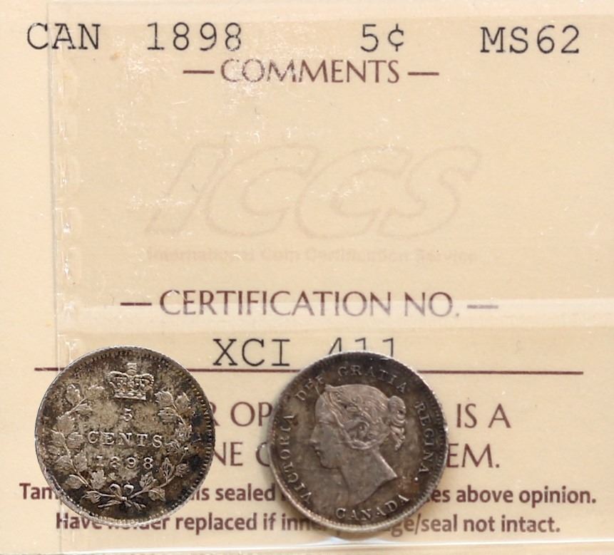 1898 5¢ ICCS Choice Mint State-62 Great toning over full underlying lustre