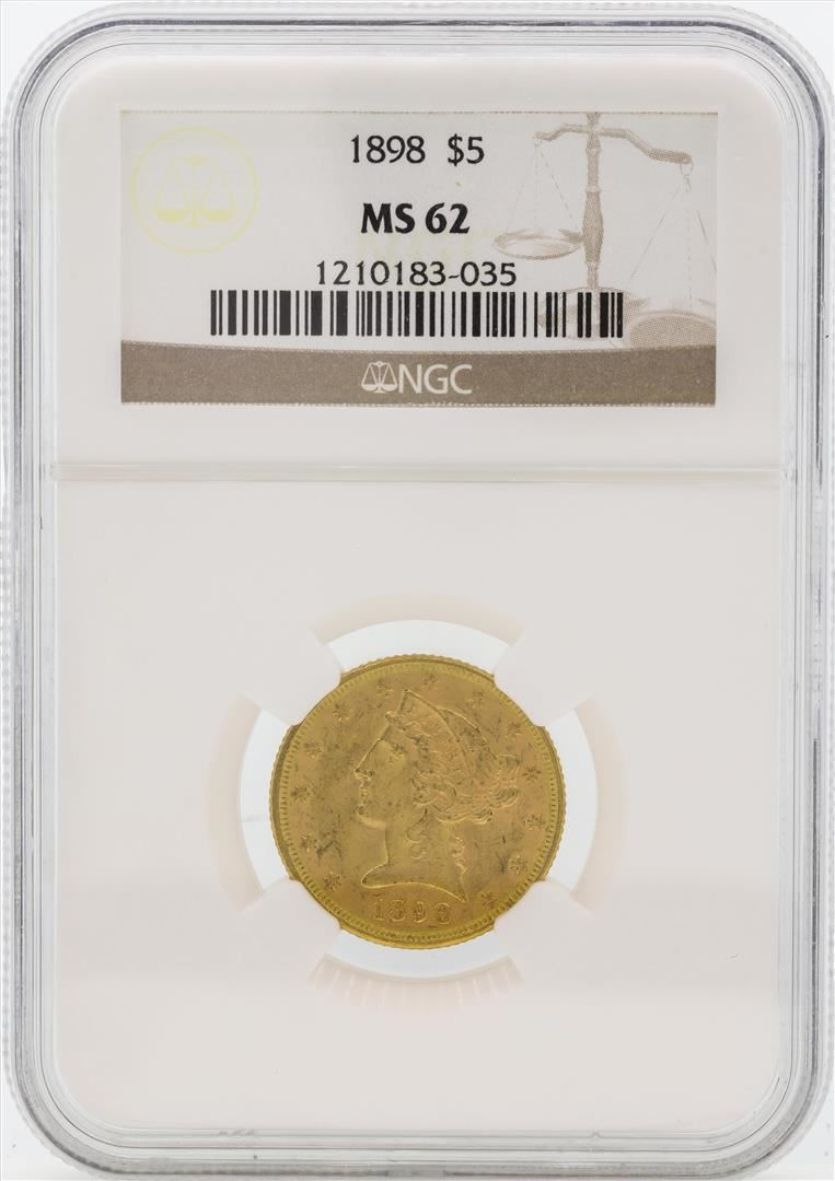 One 1898 $5 Liberty Head Half Eagle Gold Coin NGC MS62. NGC Certified.