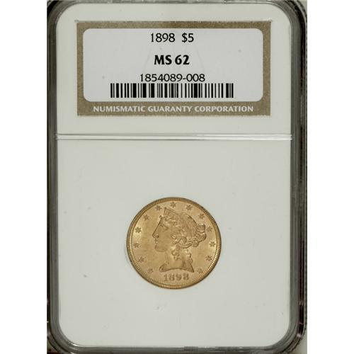 1898 $5 MS62 NGC. NGC Census: (580/362). PCGS Popu