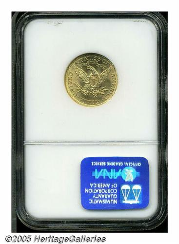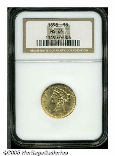 <B>1898<$5> MS64 NGC.</B></I> A lustrous near-Gem that is well struck except for the second star. A wispy die crack (as struck) travels from the rim through the second 8 in the date. A nicely preserved coin that is perfect for type purposes.