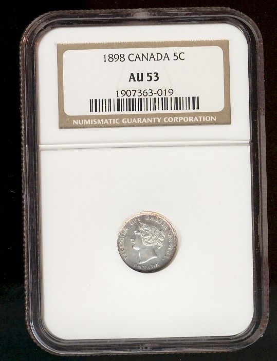1898 5¢ NGC AU53. Nice with lustre.